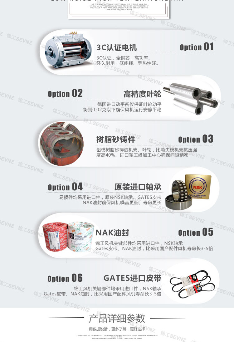 8、風(fēng)機(jī)齒輪采用20CrMnTi經(jīng)滲碳處理,磨削加工,精度達(dá)五級(jí),齒面更耐磨,能明顯降低齒輪噪音。