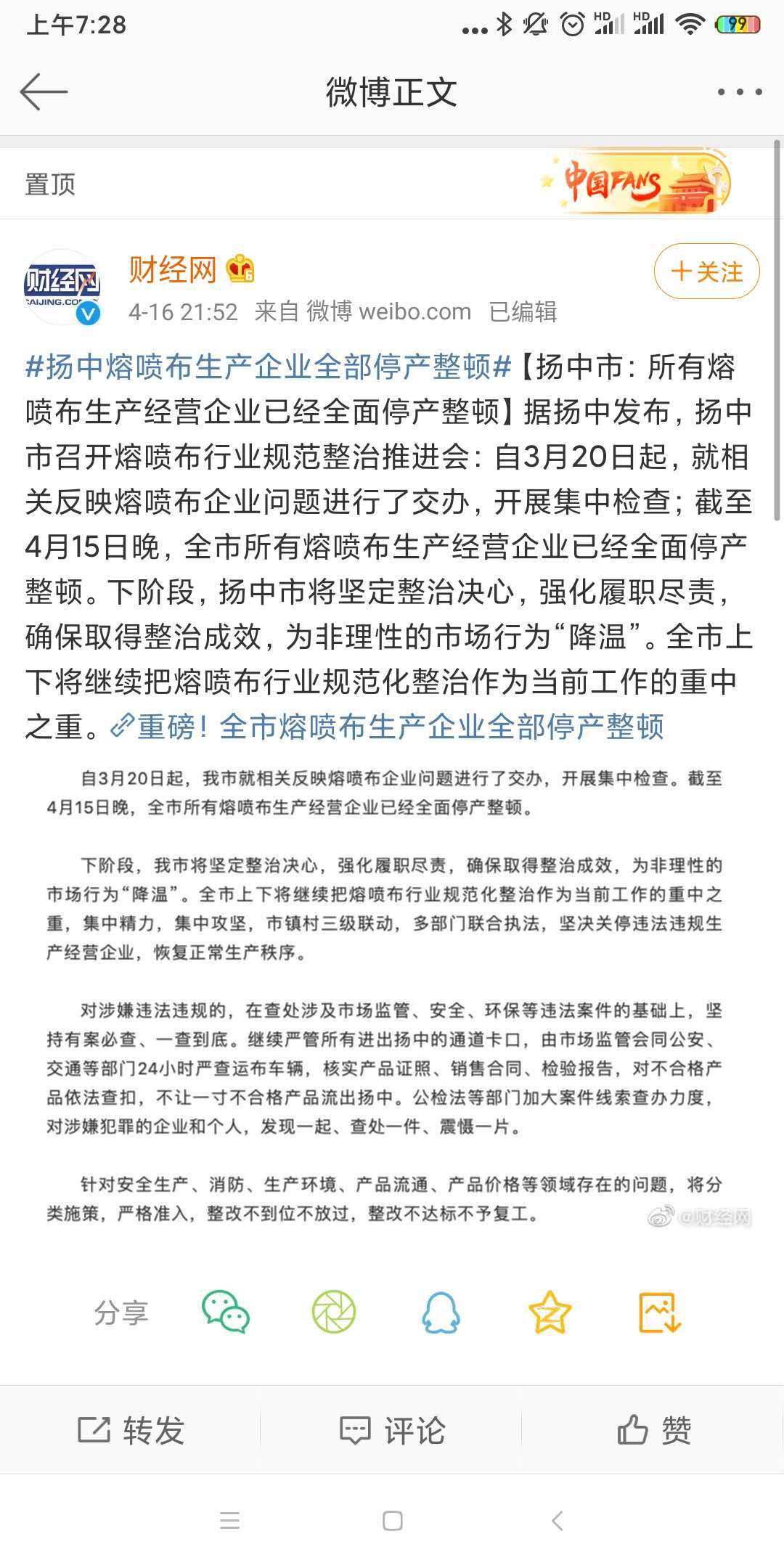 熔噴布之鄉(xiāng)1100家企業(yè)全部停產(chǎn)整頓!