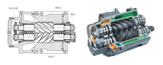 螺桿主機(jī)作為螺桿風(fēng)機(jī)的核心部件,其結(jié)構(gòu)直接決定了風(fēng)機(jī)性能的優(yōu)劣。螺桿主機(jī)主要由機(jī)殼、螺桿轉(zhuǎn)子、齒輪箱、軸承、軸封等主要部件構(gòu)成。