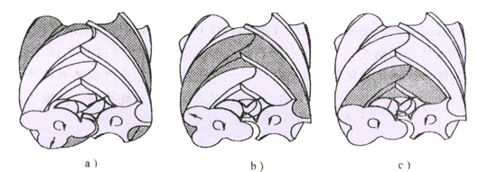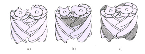 齒間容積與排氣口連通后,排氣過程開始。轉(zhuǎn)子轉(zhuǎn)動過程中,齒間容積不斷減小,將壓縮后的氣體送至排氣管。此過程一直延續(xù)到該容積達(dá)到最小值為止。