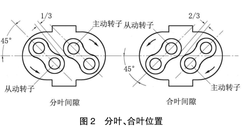 齒輪磨損,齒輪側(cè)間隙增大,將造成兩轉(zhuǎn)子位置發(fā)生變化,使主動(dòng)轉(zhuǎn)子與從動(dòng)轉(zhuǎn)子之間合葉間隙變小、分葉間隙增大,引起兩轉(zhuǎn)子互相碰撞、摩擦。